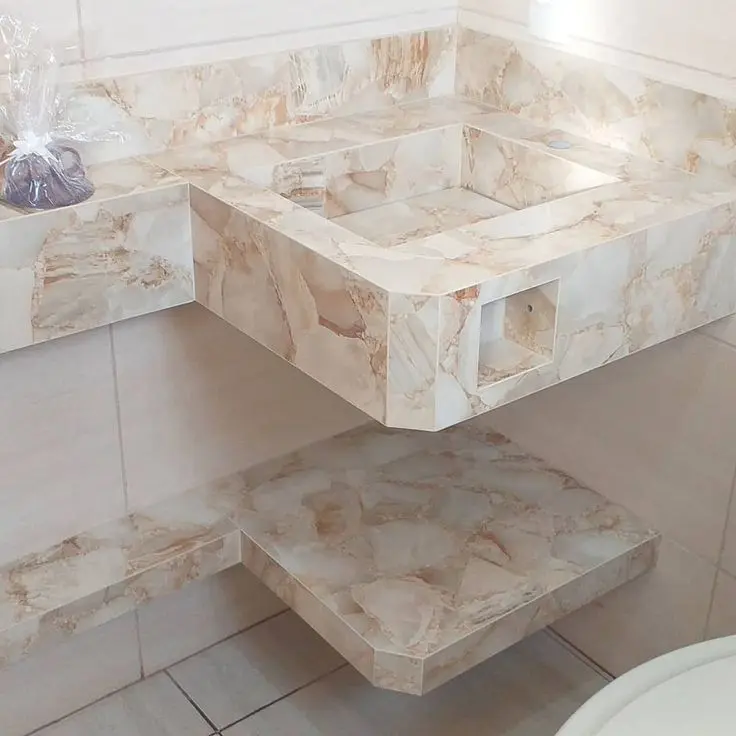 • A precision-machined natural marble bathroom sink vanity with a smooth finish, created by CNC technology for a luxurious look