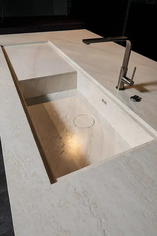 - Complex Sink Cutouts: Exact, polished openings for under-mounts or integral sinks.