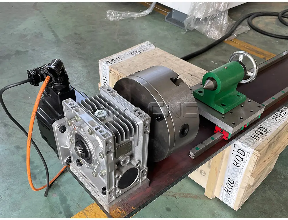 A Rotary Axis CNC Router adds a fourth rotating axis (often called a 4th axis cnc rotary table) to a standard 3-axis machine. This rotary axis for cnc allows the spindle to move around a cylindrical workpiece, enabling full cylindrical carving and 3d cnc wood carving in a single setup. Unlike flat machining, a cnc router with rotary axis can produce continuous patterns on items like table legs, columns, and sculptures.