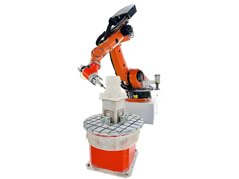 The six-axis robot with spindle, control system, and programming software processes stone, foam, wood, and plastic for furniture, molds, and props.
